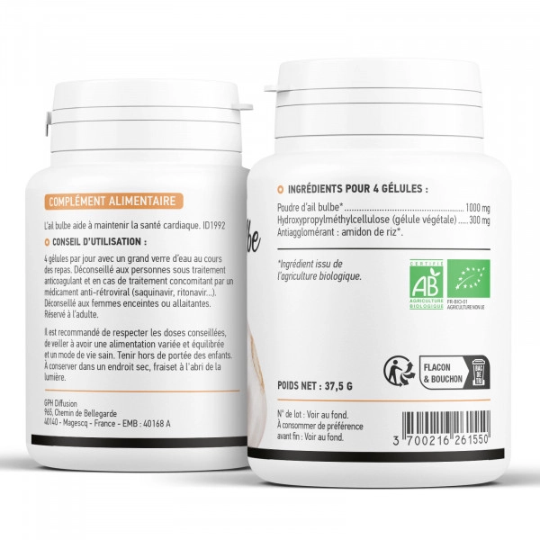 Forme galénique : gélules végétales de 280 mg de bulbe d’ail biologique